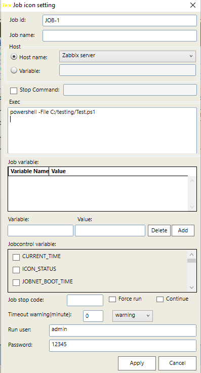 JobarrangerからPowershellの実行方法についてご教授ください。