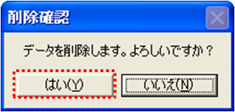 - 削除確認ダイアログが表示されるので、「はい」ボタンを押下します。