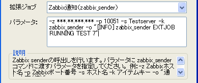 ・拡張ジョブに通知する個別のパラメータを指定 ・パラメータは半角スペース区切りの文字列で指定 ・パラメータにジョブコントローラ変数の値を使用したい場合は、"$ジョブコントローラ変数名"を指定 ・ASCII文字のみ使用可能 ・最大4000文字まで入力可能 |