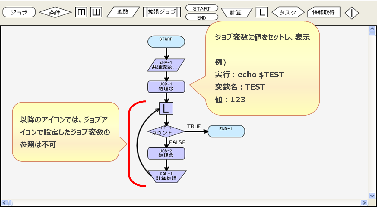 ジョブ変数とは、ジョブアイコン内でのみ環境変数として使用可能な変数の事を指します。